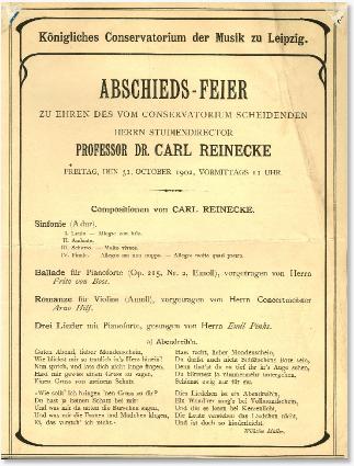 31.10.1902, Abschieds-Feier zu Ehren des vom Conservatorium scheidenden Herrn Studiendirektor Professor Dr. Carl Reinecke