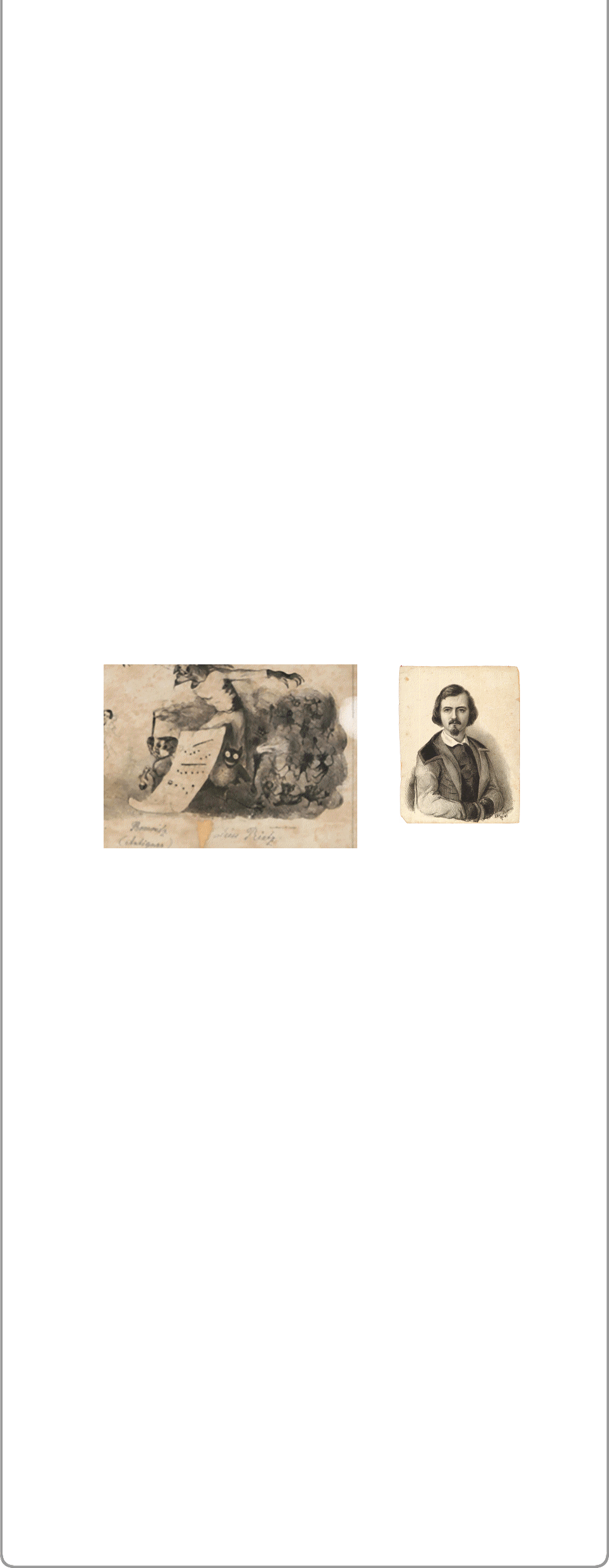 Zeichnung von Carl Reimers, Reproduktion, 1850: Aus: Das Leipziger Gewandhausorchester im Lichte der Satire, 19 Karikaturen, lithographiert von Blau & Co., Leipzig um 1850
